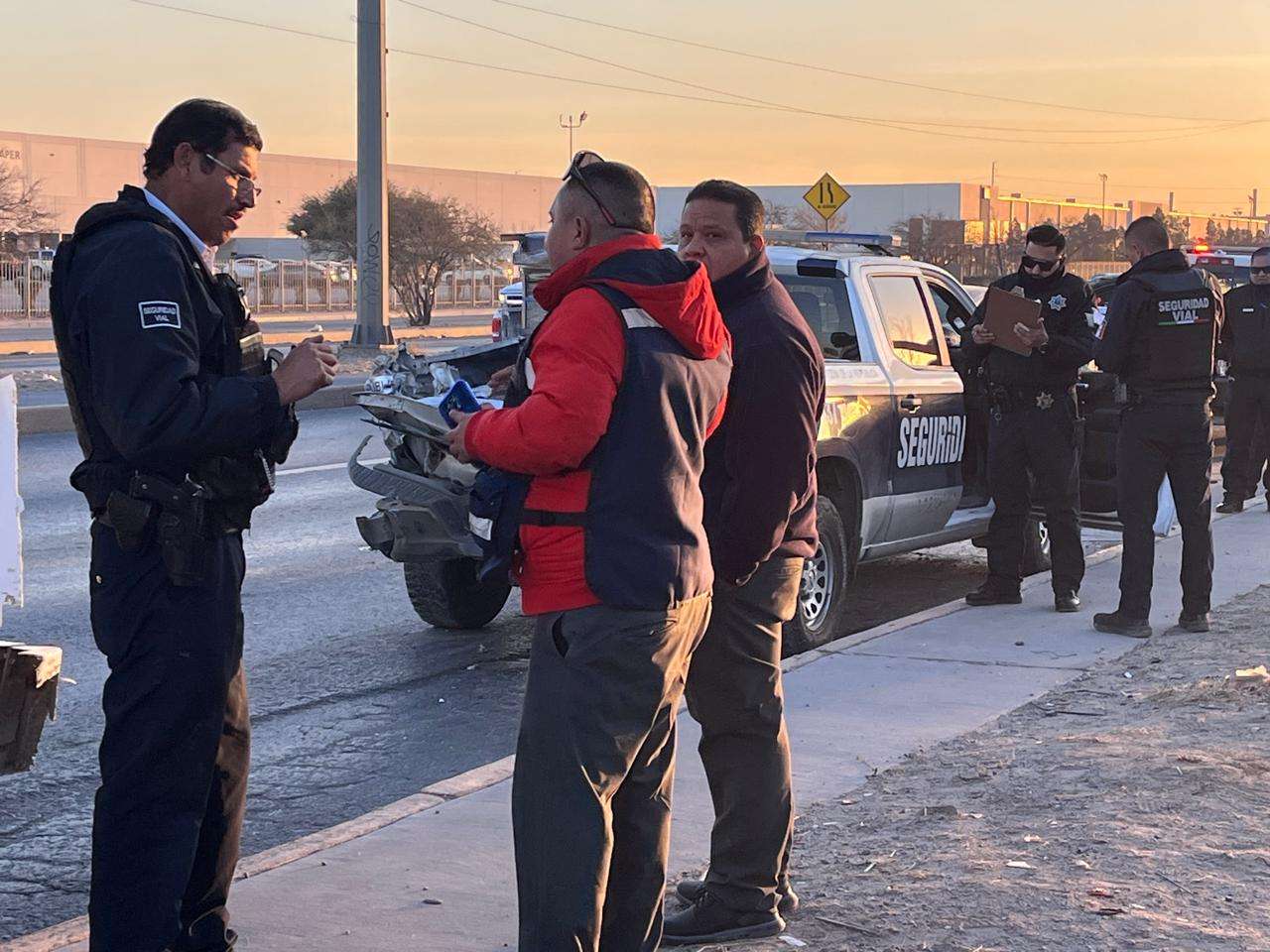 El vehículo de Seguridad Vial se encontraba estacionado, ya que los agentes atendían la situación de otro accidente ocurrido en el mismo lugar; cuando el conductor del camión llegó, no se percató de que la unidad estaba parada y fue cuando ocurrió el impacto en la parte trasera del vehículo.