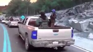 De acuerdo con información extraoficial, los hechos ocurrieron en la comunidad de Catedral, donde los agentes detectaron un Jeep gris con tres hombres fuertemente armados y una mujer que grababa la escena.